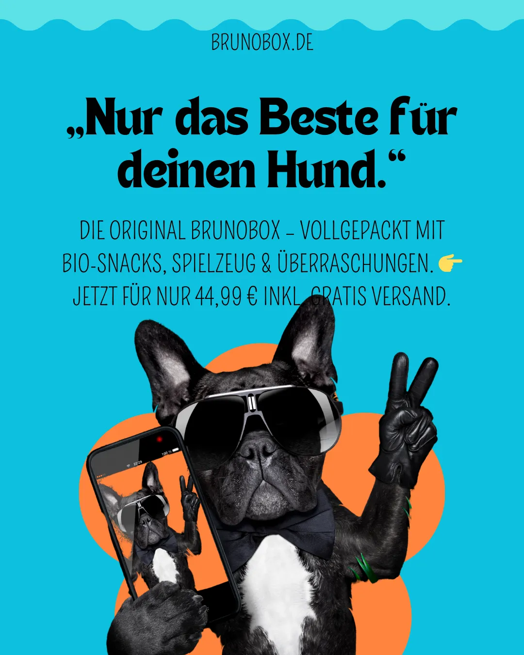 Mein Welpe Max liebt seine BrunoBox! Jeden Monat ist es wie Weihnachten. Die Qualität der Produkte ist fantastisch